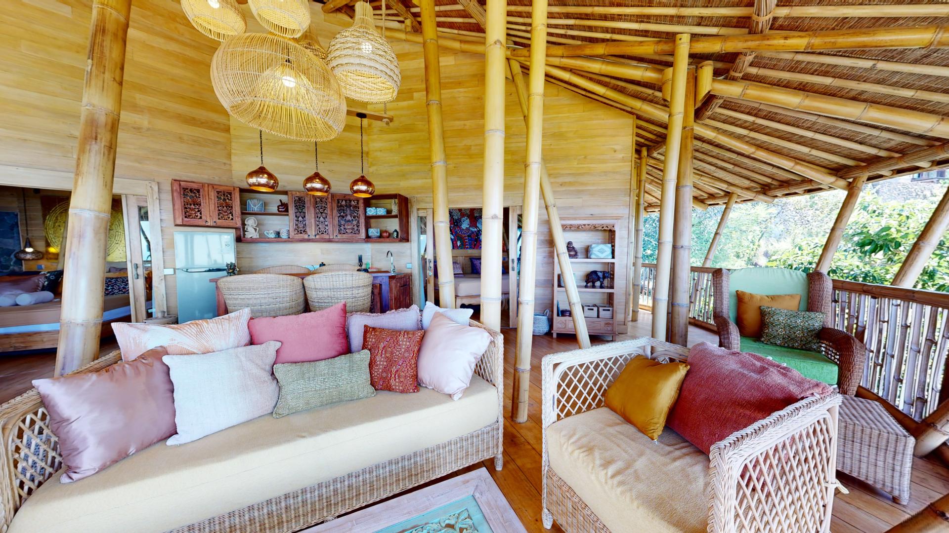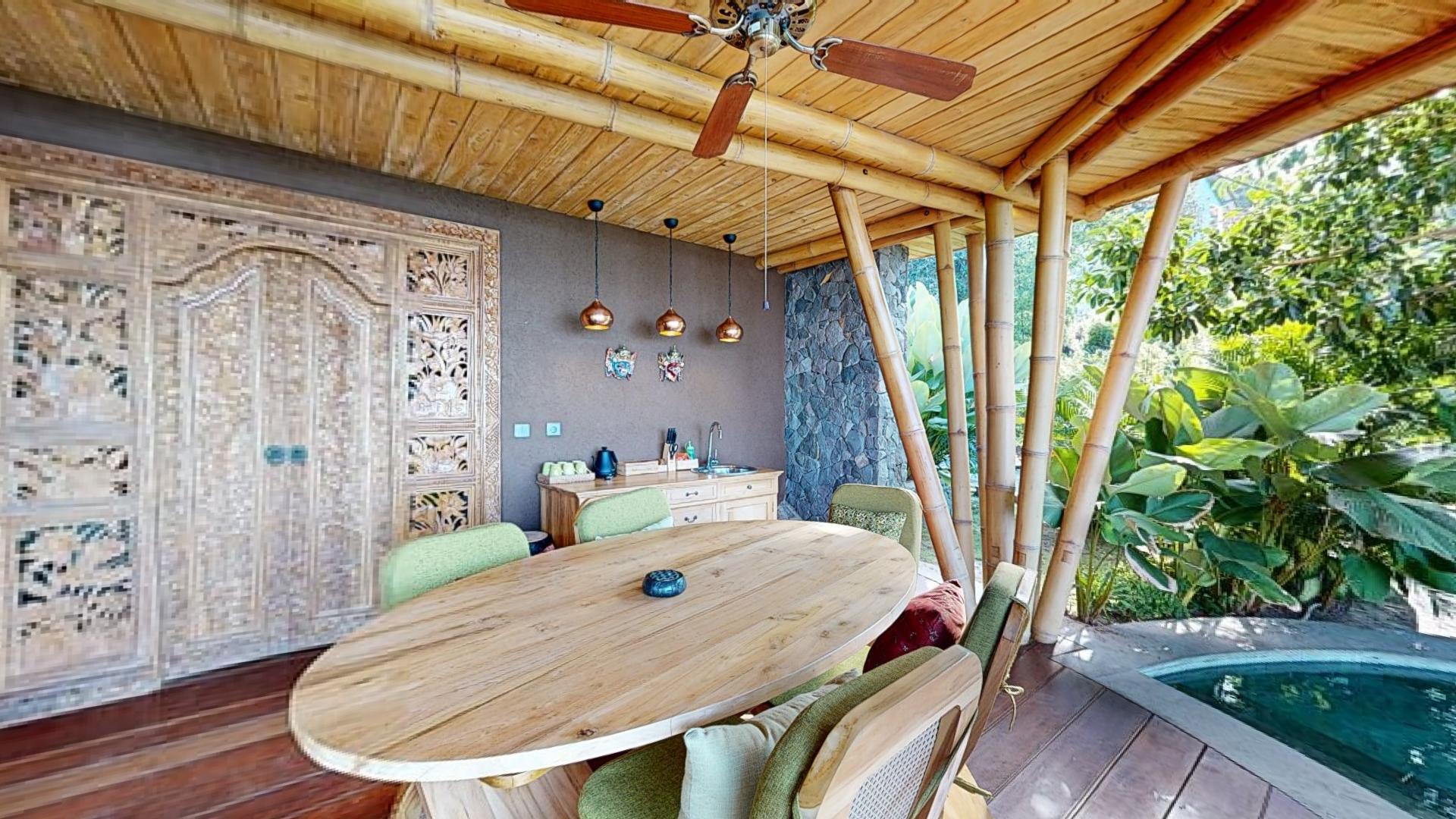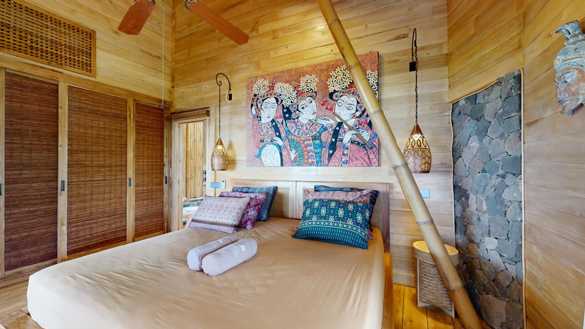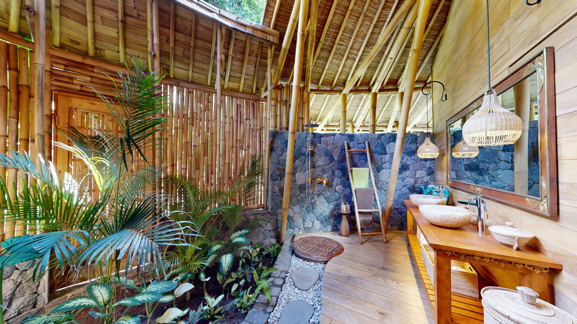 The area is known for its welcoming atmosphere, where tourists are seamlessly integrated into the local Hindu culture and daily life. The property boasts five spacious villas nestled within a tropical garden, offering breathtaking views of Lipah Bay.