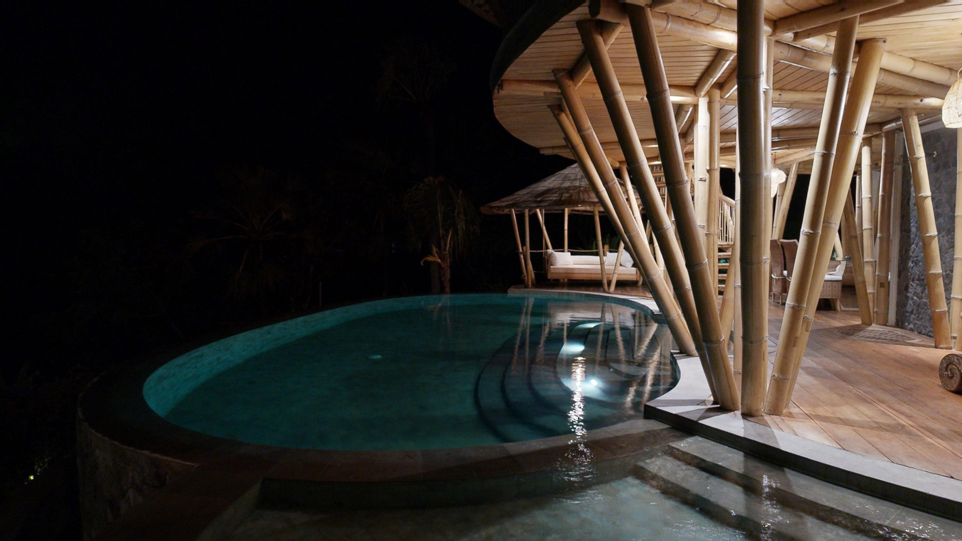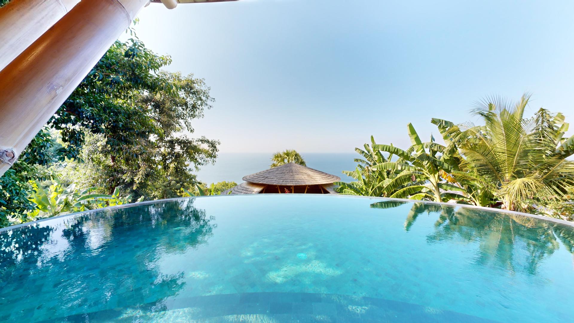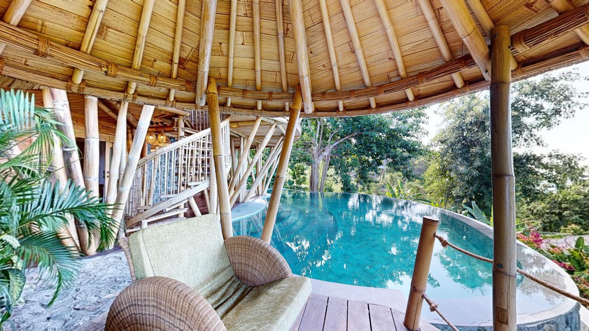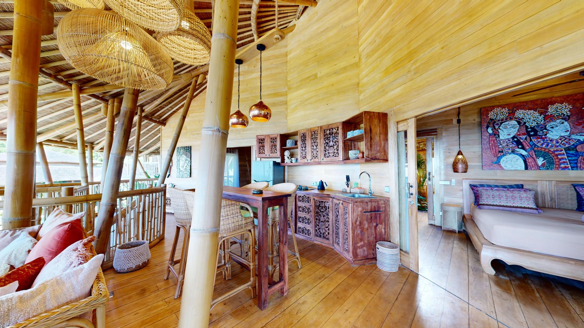 The area is known for its welcoming atmosphere, where tourists are seamlessly integrated into the local Hindu culture and daily life. The property boasts five spacious villas nestled within a tropical garden, offering breathtaking views of Lipah Bay.